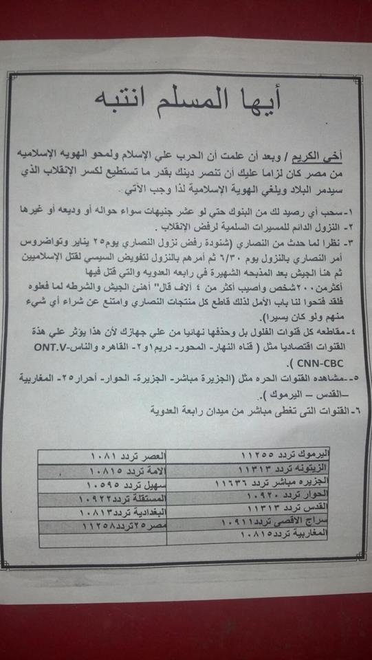 بالصور أنصار المعزول بأسيوط يدعون المواطنين لسحب ارصدتهم من البنوك لشل الاقتصاد المصري ومقاطعة منتجات أشقاؤنا المسيحيين وعدم الشراء منهم